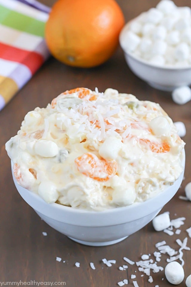 This salad is very similar to a family recipe of ours. We call ours 5 cup salad. Super easy too. It’s just 5 ingredients and each are 1 cup.