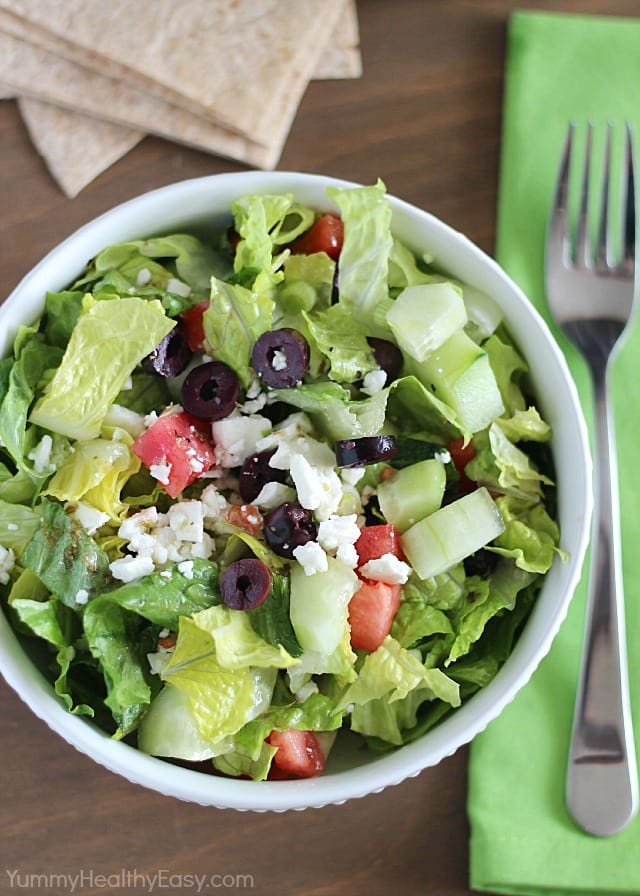 Easy Greek Salad tossed with a delicious and simple Homemade Dressing.