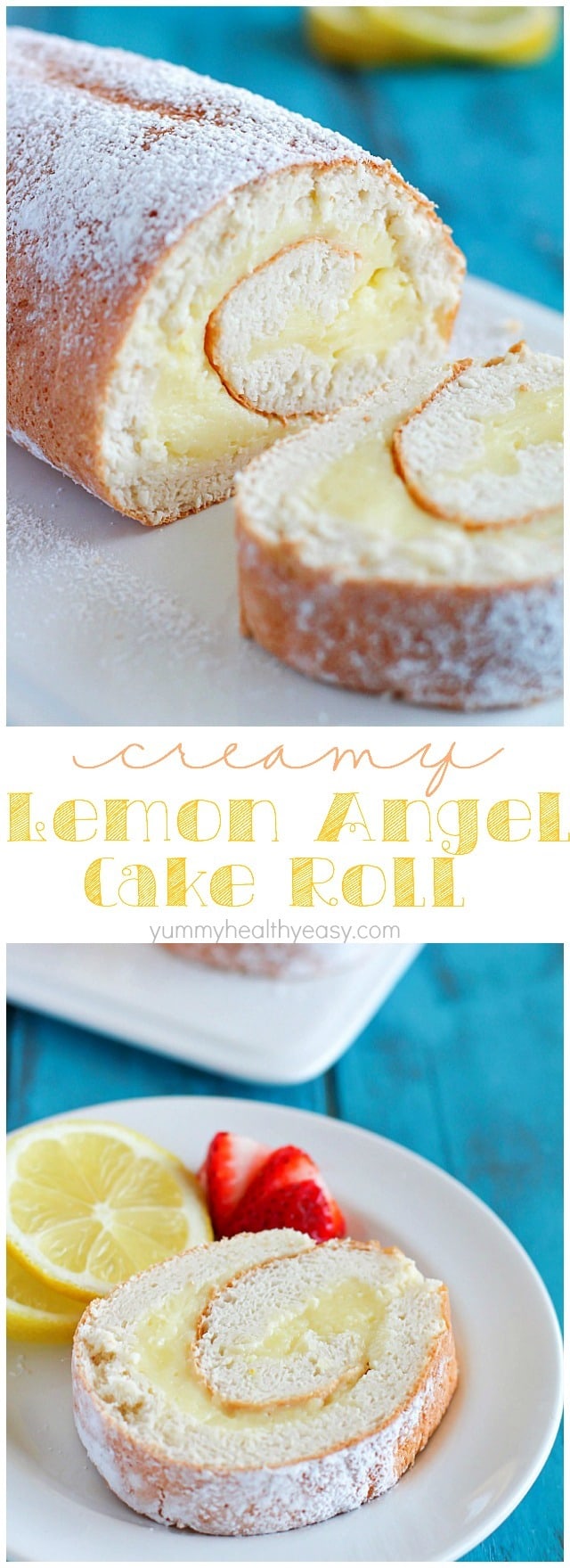 Creamy Lemon Angel Cake Roll by Yummy Healthy Easy