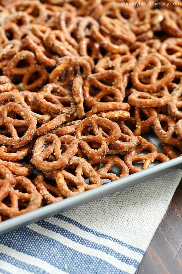 If you were to whip up a batch of these for a party, you would get rave reviews from your guests. Each small pretzel packs big taste and you won’t be able to stop noshing on them!