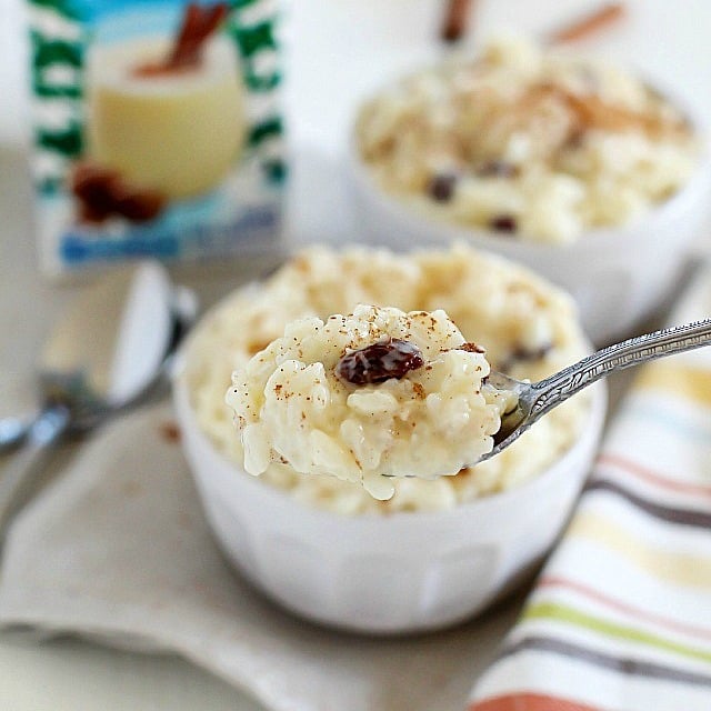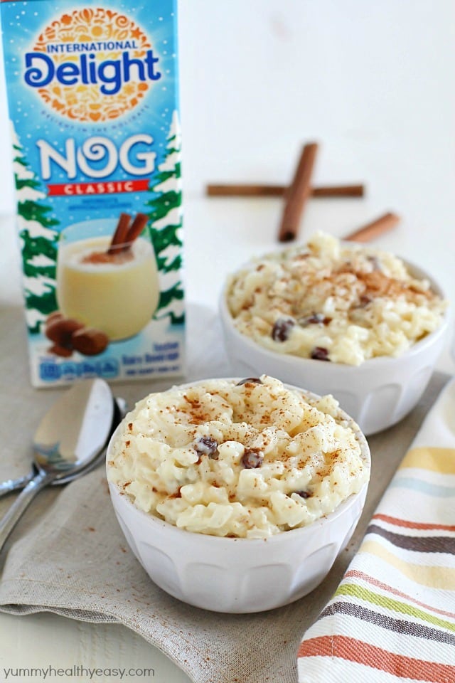 Visit InternationalDelight.com and share how International Delight helps you capture the spirit of the season for a chance to win a $5,000 holiday brunch for friends and family! I don’t know about you, but I think that sounds awesome! It’s super easy to enter, so do it now. Then grab yourself some nog and make some eggnog rice pudding. 🙂