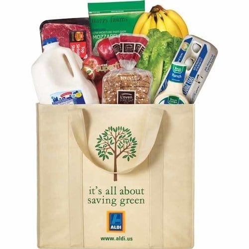 - You bag your own groceries. Not only does this save on plastic bag waste, but it saves YOU money because ALDI doesn’t have to hire an employee to bag your groceries. Not sure about you, but I like to bag my own groceries. I can put items where I want them in the bags.