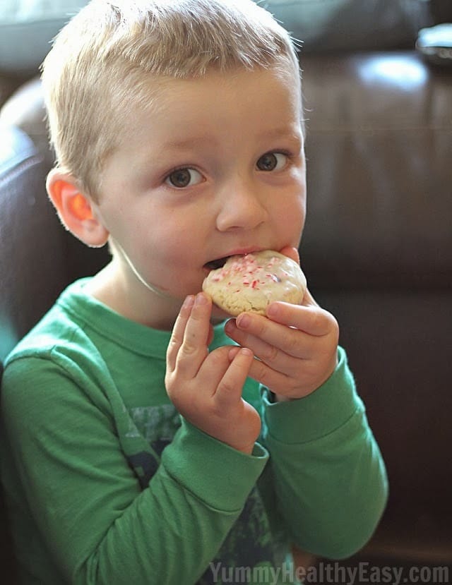 These cookies look wonderful and love that you don’t have to roll them out or decorate them too much. Aaw,your son looks so adorable snacking on this too 🙂