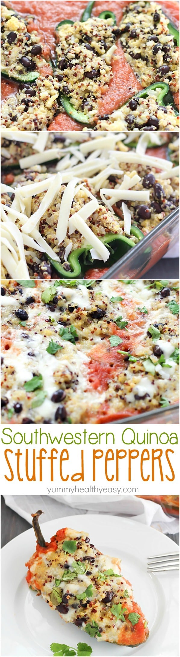 I’ve got the best Meatless Monday recipe for you today: Southwestern Quinoa Stuffed Peppers.