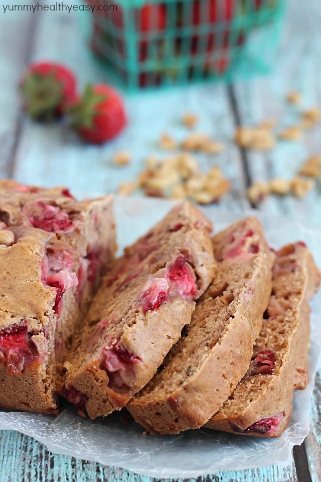 I’m a carb-aholic, too — fresh baked pastries and breads are my serious weakness. It’s great to have healthier versions so you don’t have to feel guilty, and this one looks healthy and delicious! Love all those strawberries. 🙂