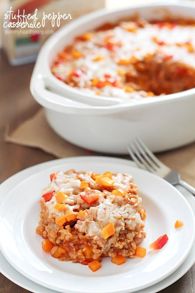 This Stuffed Bell Pepper Casserole Recipe is much easier to make and just as good, (maybe even better!) than stuffed peppers.
