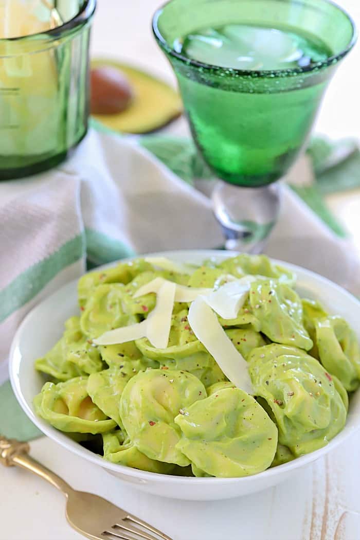 Tortellini is tossed in a creamy avocado pasta sauce for a crazy delicious and easy dinner any night of the week!