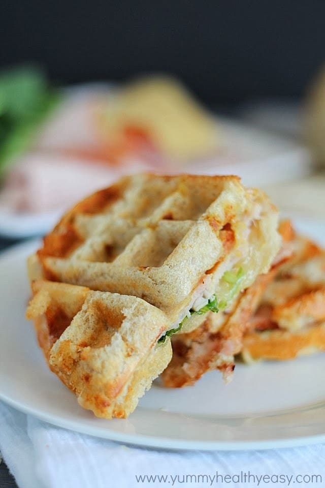 The waffle iron gives the sandwich the toasty outside with the melty inside, just like a panini. It also gives the sandwich the great nooks and crannies of a waffle which makes it fun to serve and fun to eat! My boys thought the sandwiches came out looking pretty cool. Plus this is a great way to use up that leftover turkey from Thanksgiving!