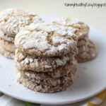 Pour about 1/3 cup of powdered sugar into a small bowl. Drop chilled dough by tablespoon (I used a cookie scoop) into powdered sugar and roll dough around until covered. Bake for about 9-11 minutes. Bake time depends on size of cookies so keep checking to see if cooked! Cool on baking rack and ENJOY!!