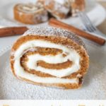Easy pumpkin cake rolled up with delicious cream filling and sliced.