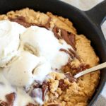 • Divide the cookie mixture into two 8" greased cast iron skillets. Place small scoops of the Nutella spread on top of the cookie and swirl with the tip of a knife to get a swirled effect.
