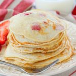 Strawberry Pancakes packed with cubed strawberries and are so light and fluffy! They're a quick and easy to make breakfast the whole family will love!