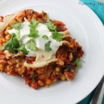 • Repeat the layers TWO more times and then top with 2 tortillas. Cover and cook on LOW 6-8 hours. Scoop out onto plates and serve with sour cream and chopped cilantro. ENJOY!!