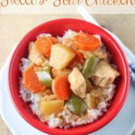 • In a separate bowl, combine pineapple (and juice), brown sugar, vinegar, soy sauce, ginger, garlic powder, bouillon and salt. Pour over chicken.
