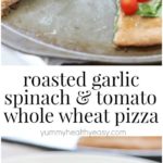 Bake crust for 8 minutes. Then top with spinach, mozzarella, cherry tomatoes, parmesan and pine nuts.